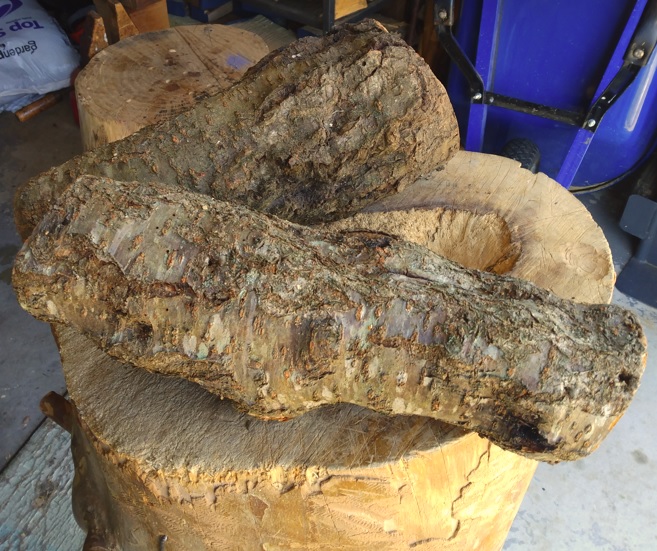 I was gifted with a couple pieces of Plum by some friends of ours whom we visited yesterday for a ceremony honoring the Fall. Plum is a heavier wood, and it’s difficult to carve, even when it’s green. What they gave me seems a bit dry, so it’ll probably end up feeding the band saw instead of a hook knife and hatchet.