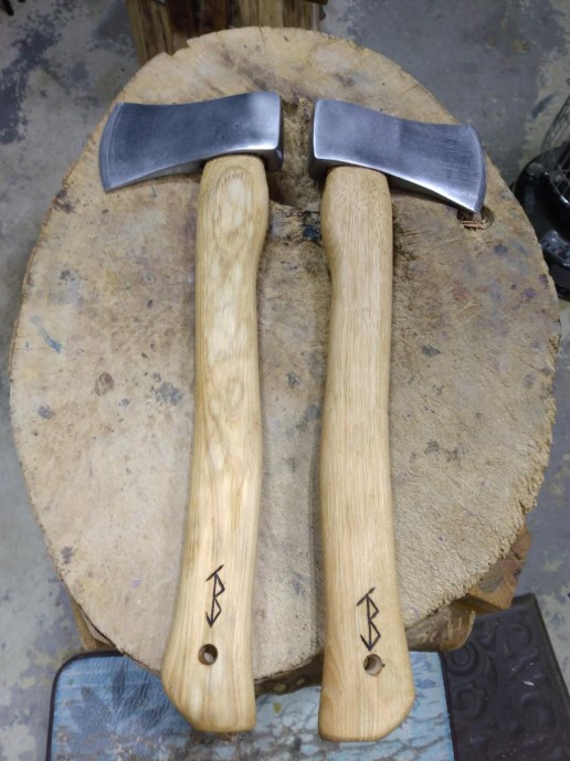 Once they were sufficiently sharpened, I burned in my maker’s mark and oiled the handles.